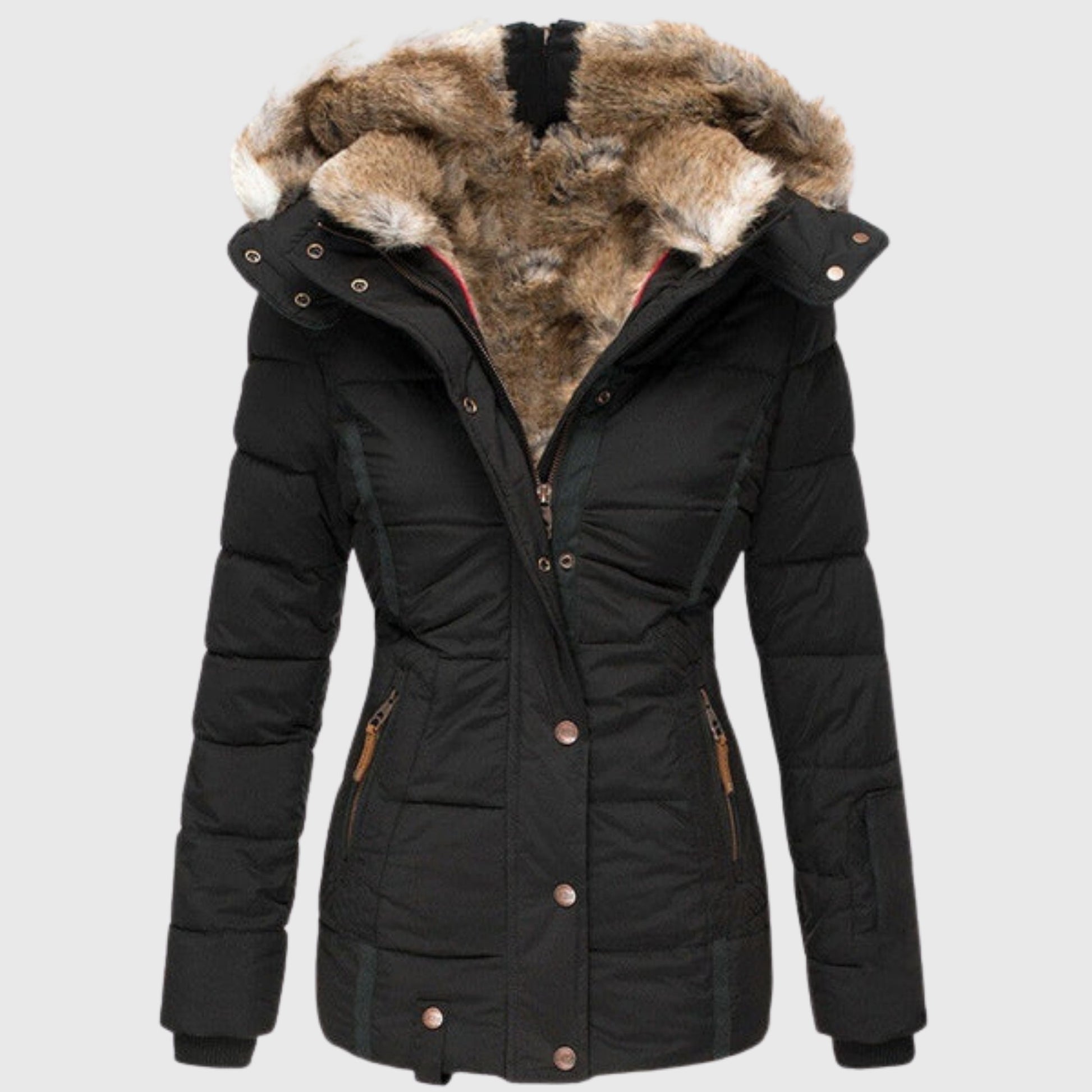 Stay effortlessly chic while keeping warm on cold days. This jacket is designed to combine elegance with a cosy touch, offering a flattering silhouette while ensuring you remain comfortable.